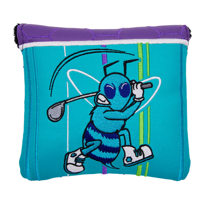 And he sends it soaring—straight down the fairway, right onto the green... and BOOM! That’s a hole-in-one to win the whole thing! The Carolina Stinger comes through in the clutch and takes the crown! This mallet putter headcover brings the buzz with a bold teal base, accented by purple, lime green, white, and black stitching. Finished with a soft black plush interior and a magnetic closure—it’s the perfect mix of style and functionality. Limited quantities are available.