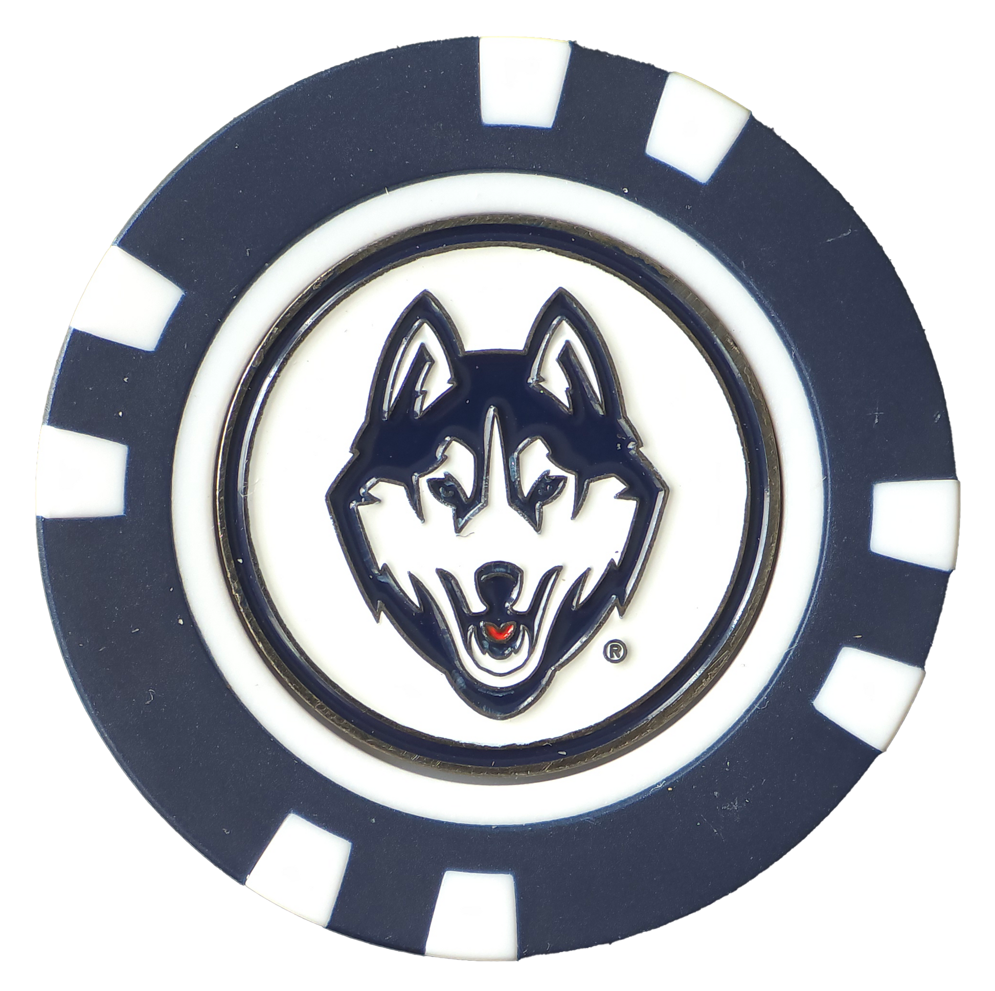 Carry the pride of the University of Connecticut with you to every hole with this officially licensed UConn Huskies Poker Chip Ball Marker. Designed in UConn’s signature navy, white, and red, this poker chip features the iconic Huskies logo and a removable, magnetic metal marker for convenient ball marking. A must-have for loyal Huskies fans who want to bring a touch of Storrs to the course.