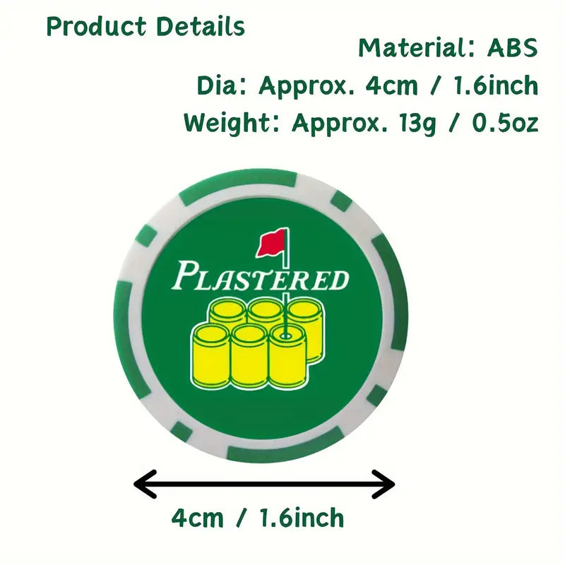Get “Plastered” on the green (no drinking required) with this fun, golf-themed poker chip ball marker. Featuring a bright design with a stack of keg barrels and a magnetic center, it's a must-have for golfers who like to keep things playful.