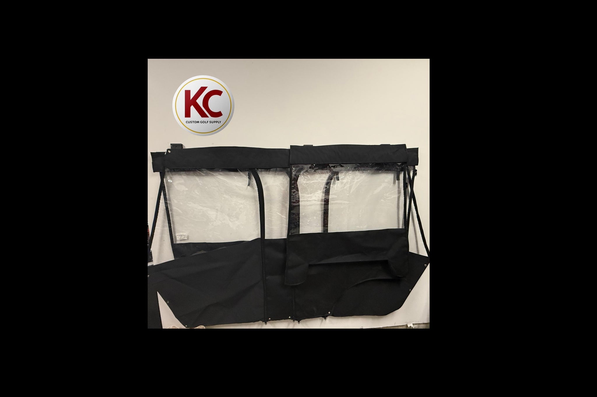 Introducing the KC Custom Golf Supply Track Style Golf Cart Enclosure Wall Mount! Tired of rolling and storing your golf cart enclosure on the floor or finding a place for it to live? Use this enclosure wall mount to store it with ease! Don't worry about creases in your windows by rolling or folding. These hang flat against the wall. Includes 4 wall mount brackets (mounting hardware and cover not included).