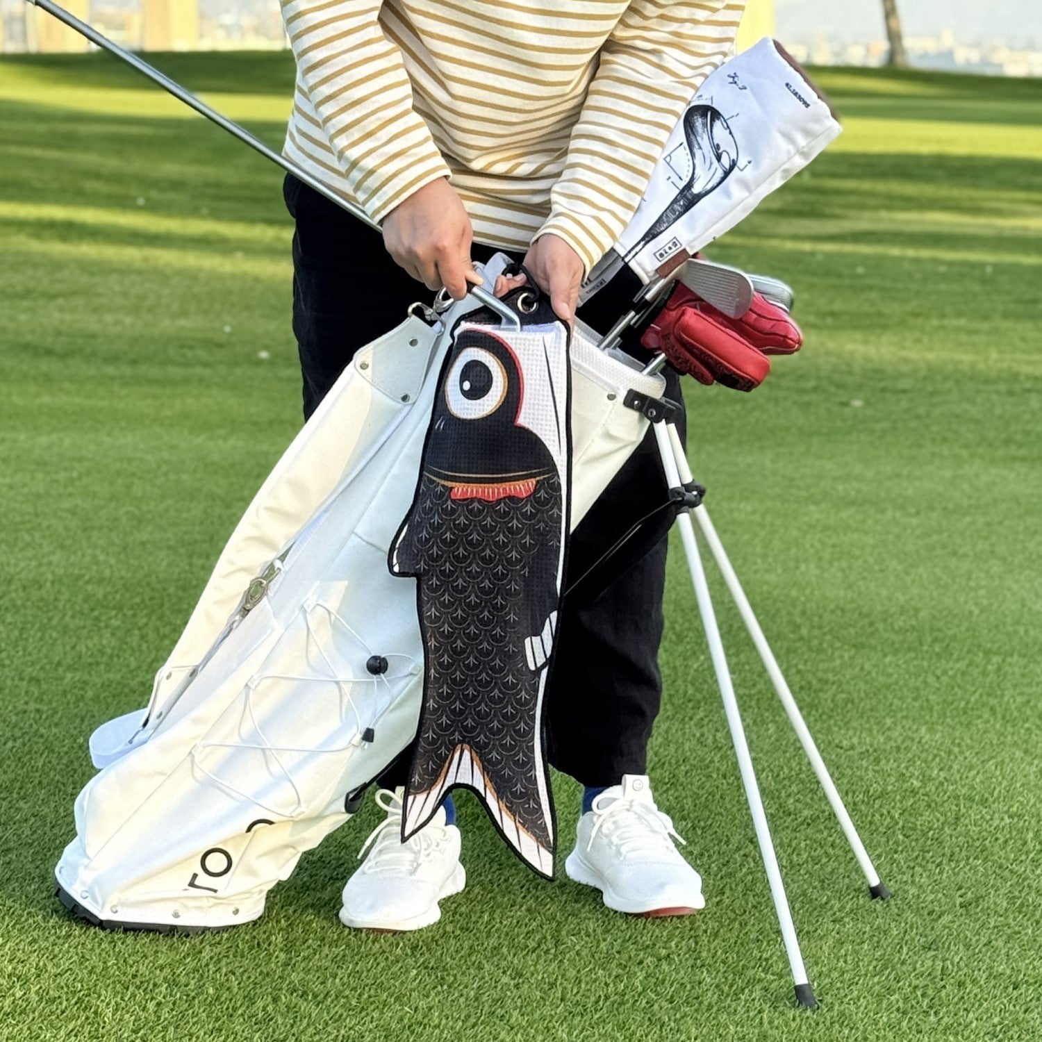 The Koi Utility towel is crafted with a hidden water-retaining pocket. This towel delivers a deep clean for your irons and hybrids, whether you’re battling dirt or residue from the range mat. Made with 3D waffle terry fabric, it not only wipes away grime but also dries and polishes your clubs to perfection.