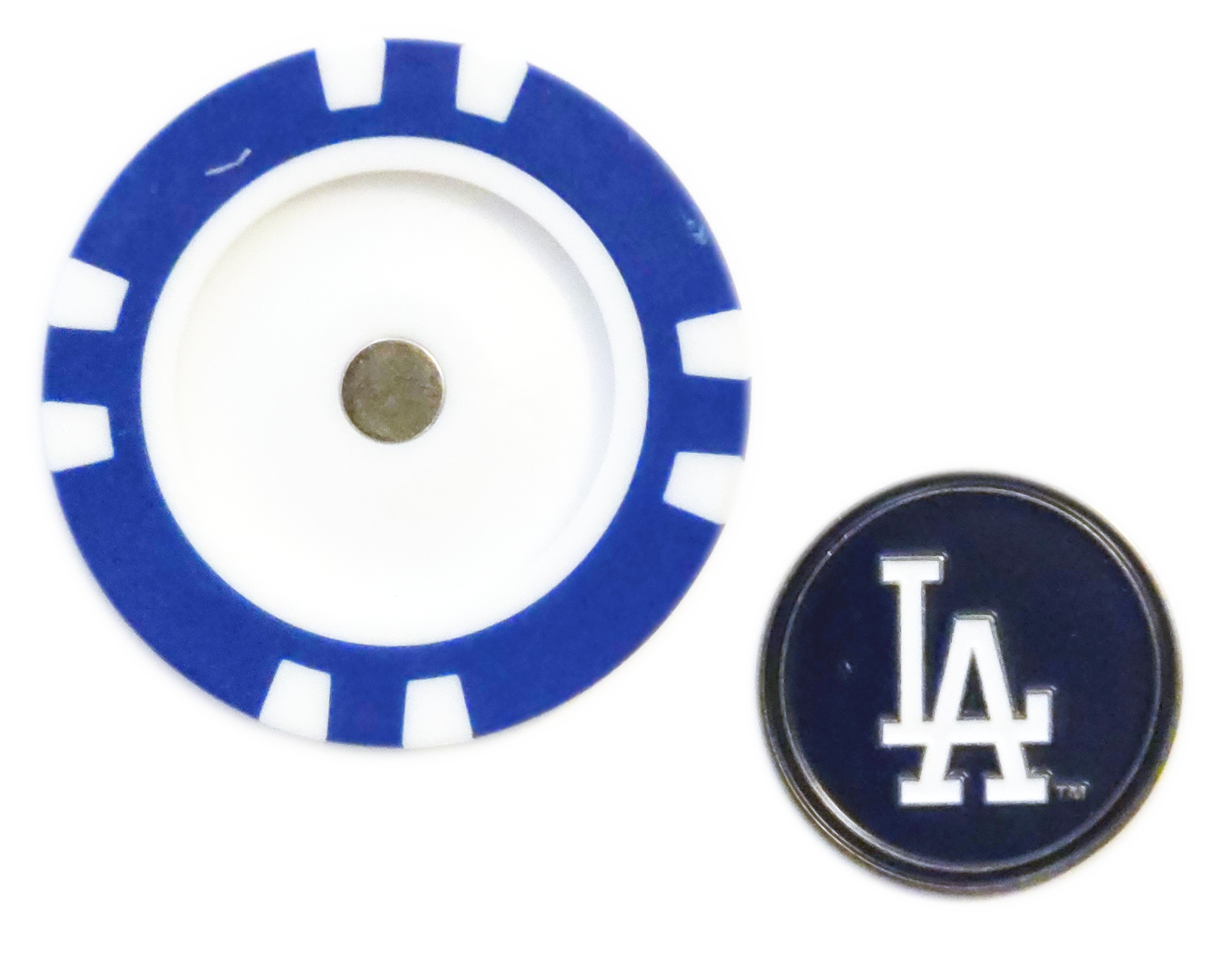 Whether you're a lifelong fan or just love the iconic Dodger Blue, this officially licensed Los Angeles Dodgers Poker Chip Ball Marker is a must-have for your golf bag. The poker chip design features a removable, double-sided metal marker that magnetically snaps into place, making it easy to mark your ball while representing the Dodgers. Featuring the classic "LA" logo and Dodgers blue and white colors, this marker is built for fans who want to show their team pride on every hole.