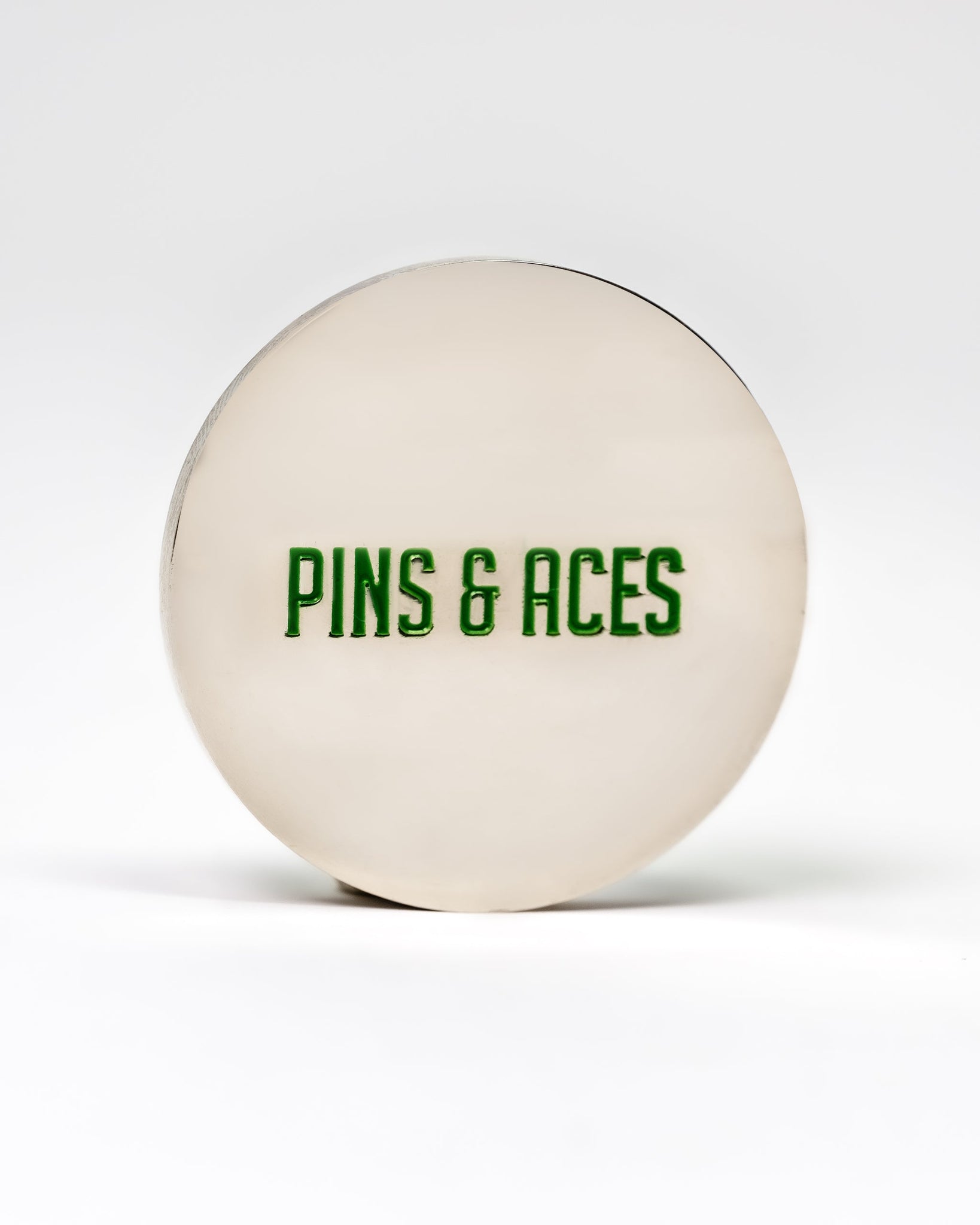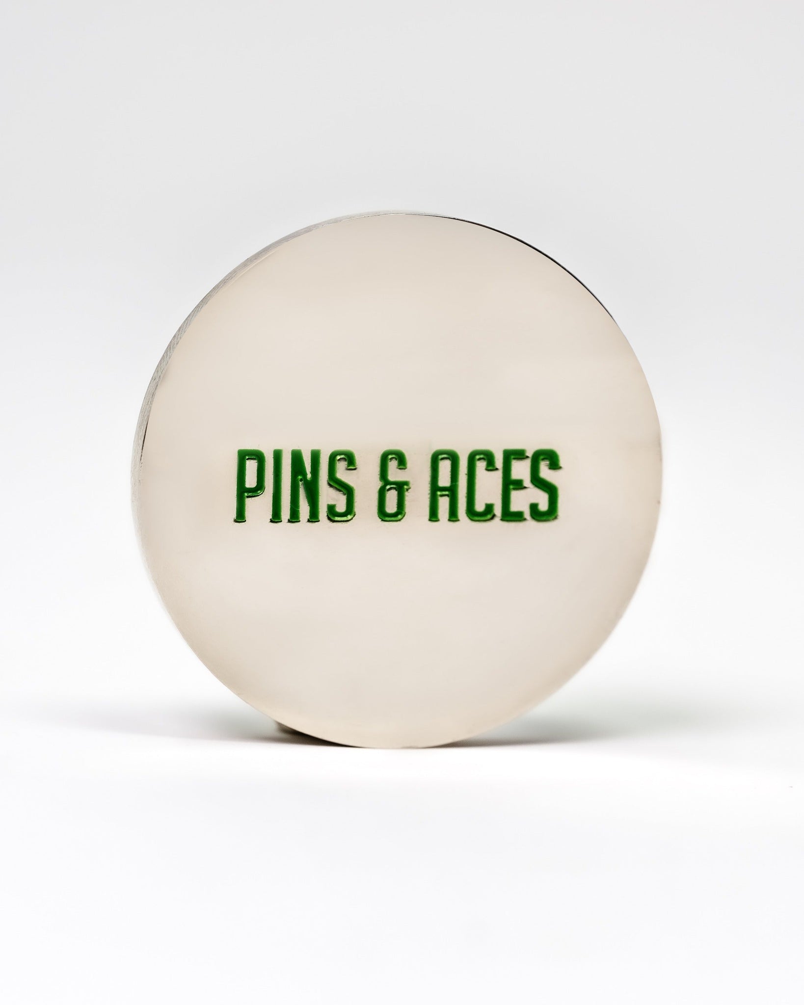 Pins & Aces signature ball markers! Made from cast stainless steel and finished with oven cured enamel, these markers are durable and heavy with a premium feel. Easily attaches to any magnetic surface like a hat clip or divot tool.