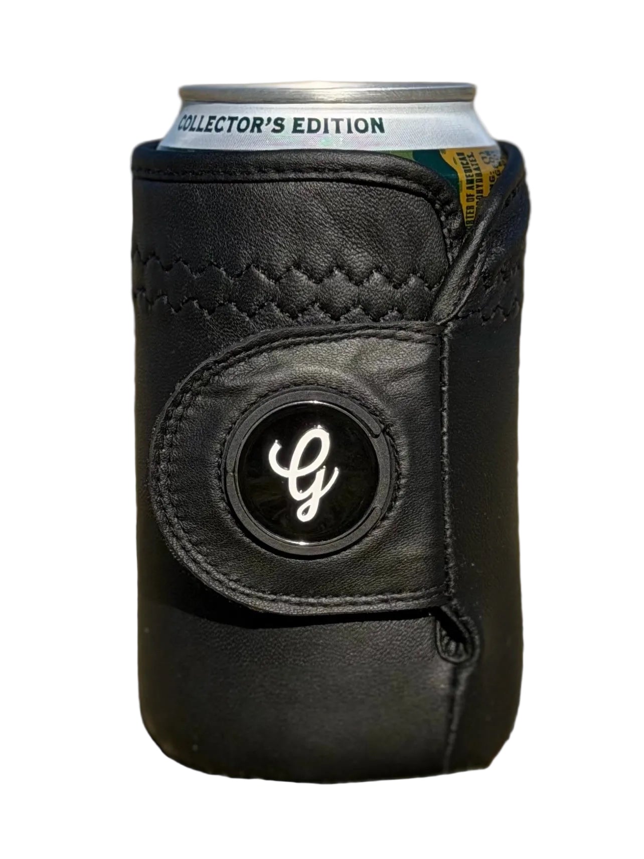 The Gloozie is a beverage holder crafted from premium cabretta leather—the same high-quality material used in golf gloves. It features a functional strap, a 25mm magnetic ball marker and 3mm of foam insulation between the inner lining and the leather. The exterior is treated with a hydrophobic solution, keeping the exterior dry, even in damp conditions.