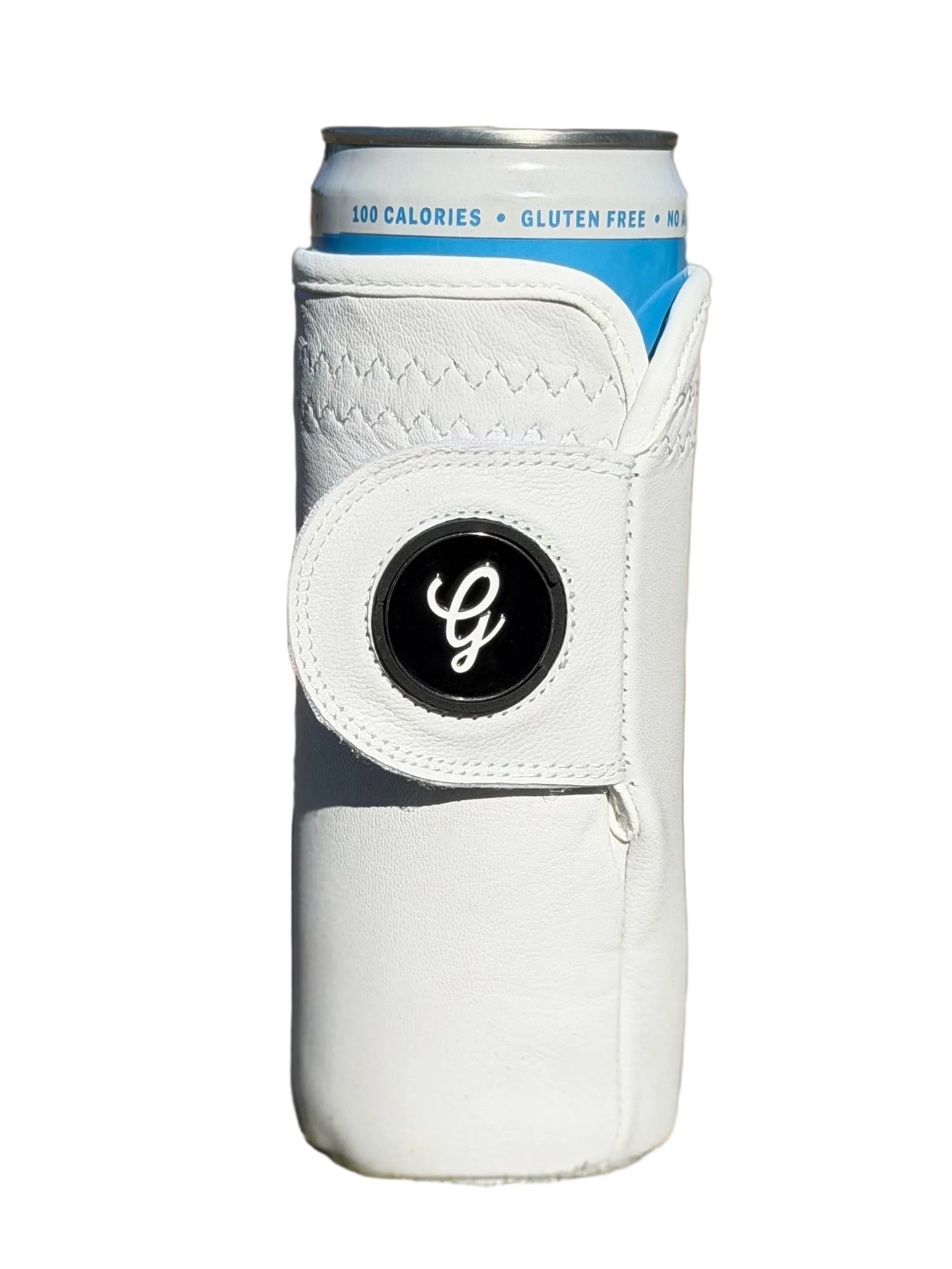 The Gloozie is a beverage holder crafted from premium cabretta leather—the same high-quality material used in golf gloves. It features a functional strap, a 25mm magnetic ball marker and 3mm of foam insulation between the inner lining and the leather. The exterior is treated with a hydrophobic solution, keeping the exterior dry, even in damp conditions.