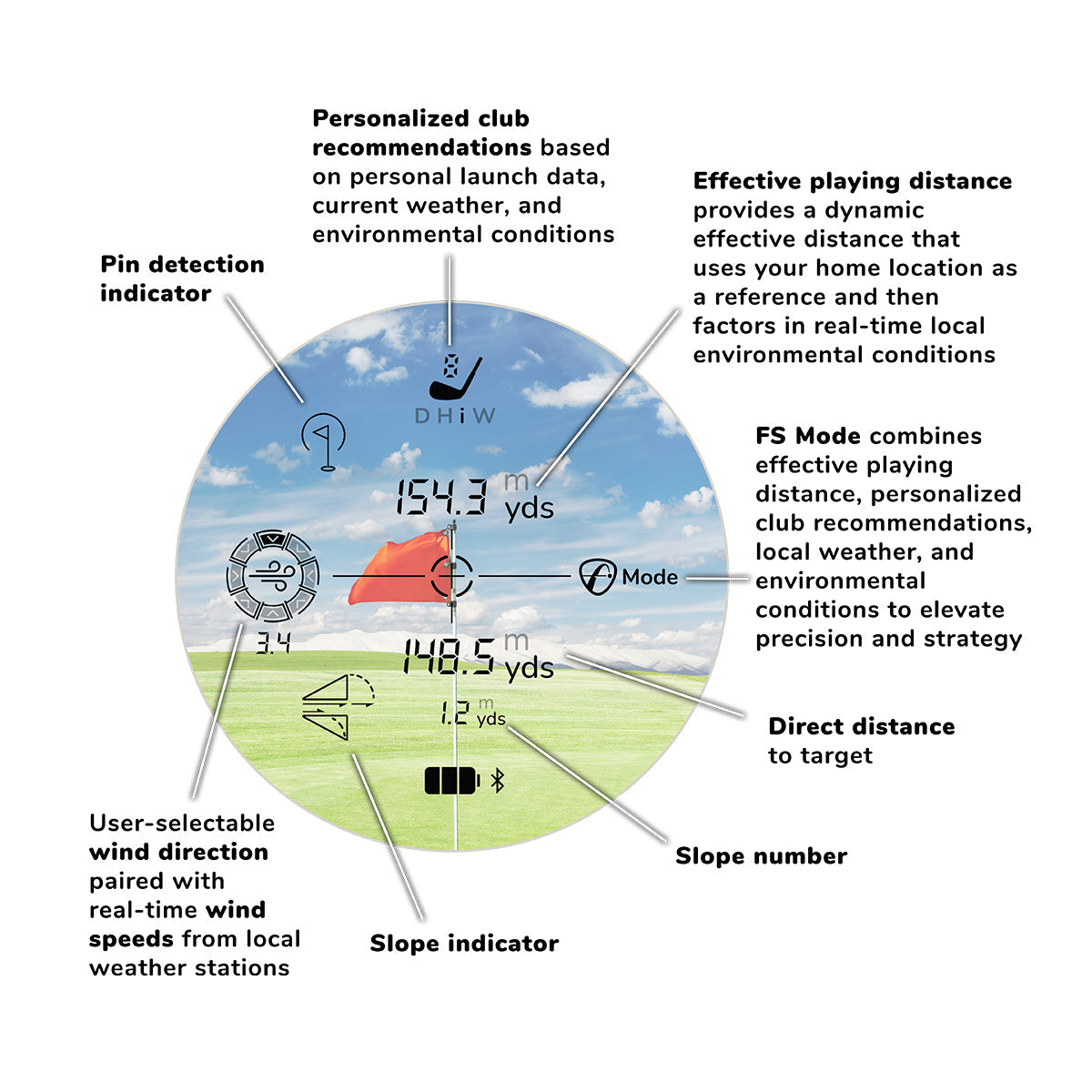 Get personalized club recommendations based on the laser detecting the distance to pin, your personal launch data, real-time weather integration, and environmental conditions