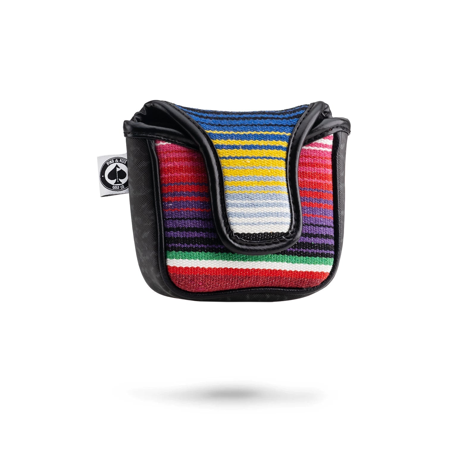 Stylize and customize the look of your golf bag with this high quality, hand-made putter headcover. Featuring hand sewn panels and faux mustache with embroidered Sugar Skull design. The lower part of this cover is made from an authentic Mexican blanket. NOTE: each cover will be unique with a different cut of the blanket.