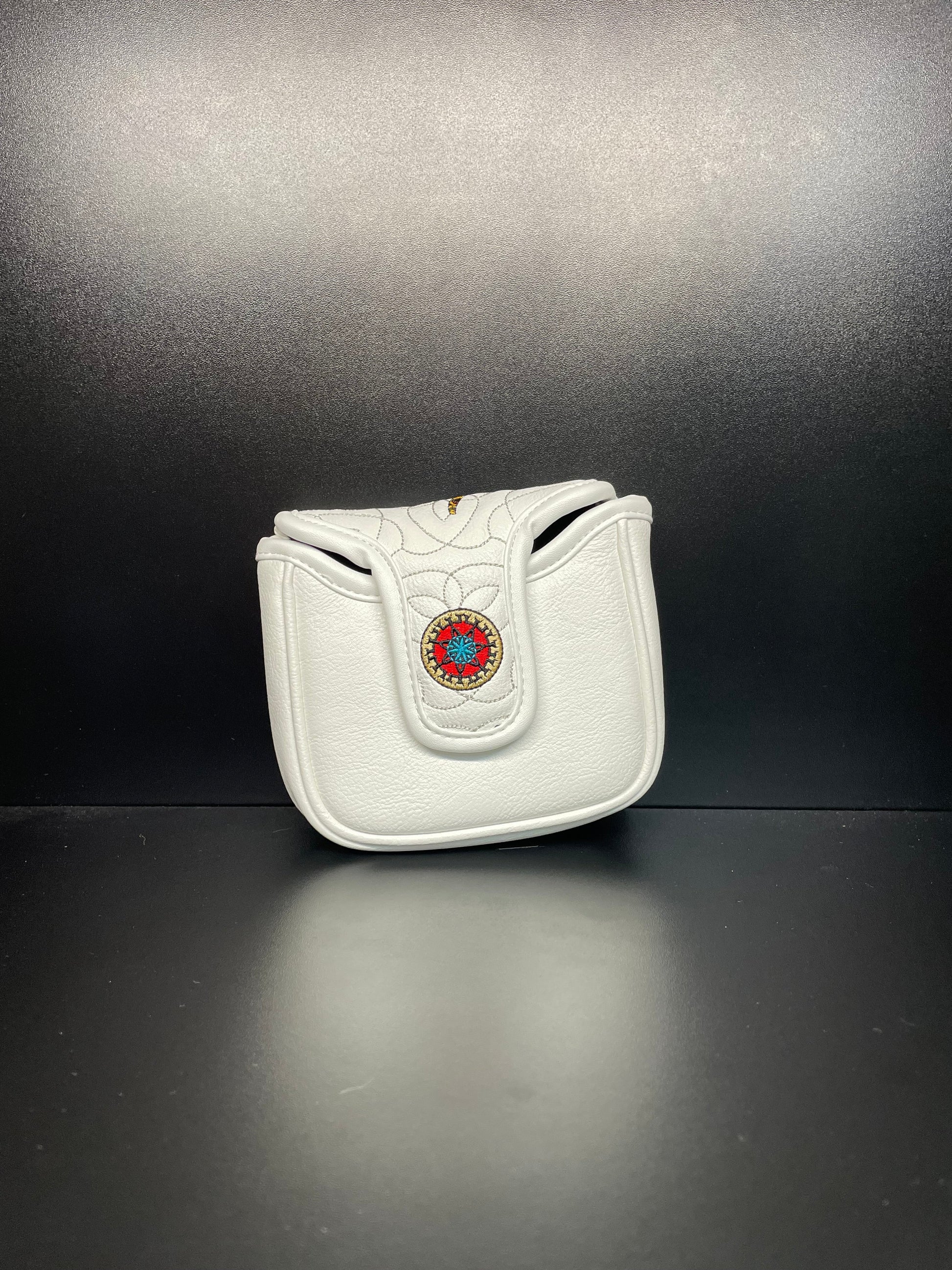 The Native American Headcover is a golf accessory designed to protect and stylize the head of a golf club, typically a driver or fairway wood. Inspired by Native American culture and heritage, this headcover often features traditional motifs, patterns, or symbols associated with Indigenous peoples of North America. It may incorporate elements such as geometric designs, feathers, dreamcatchers, or tribal emblems, reflecting the rich history and artistry of Native American cultures. The headcover serves both a functional and aesthetic purpose, offering protection for the club head while adding a unique and culturally significant touch to a golfer's equipment.
