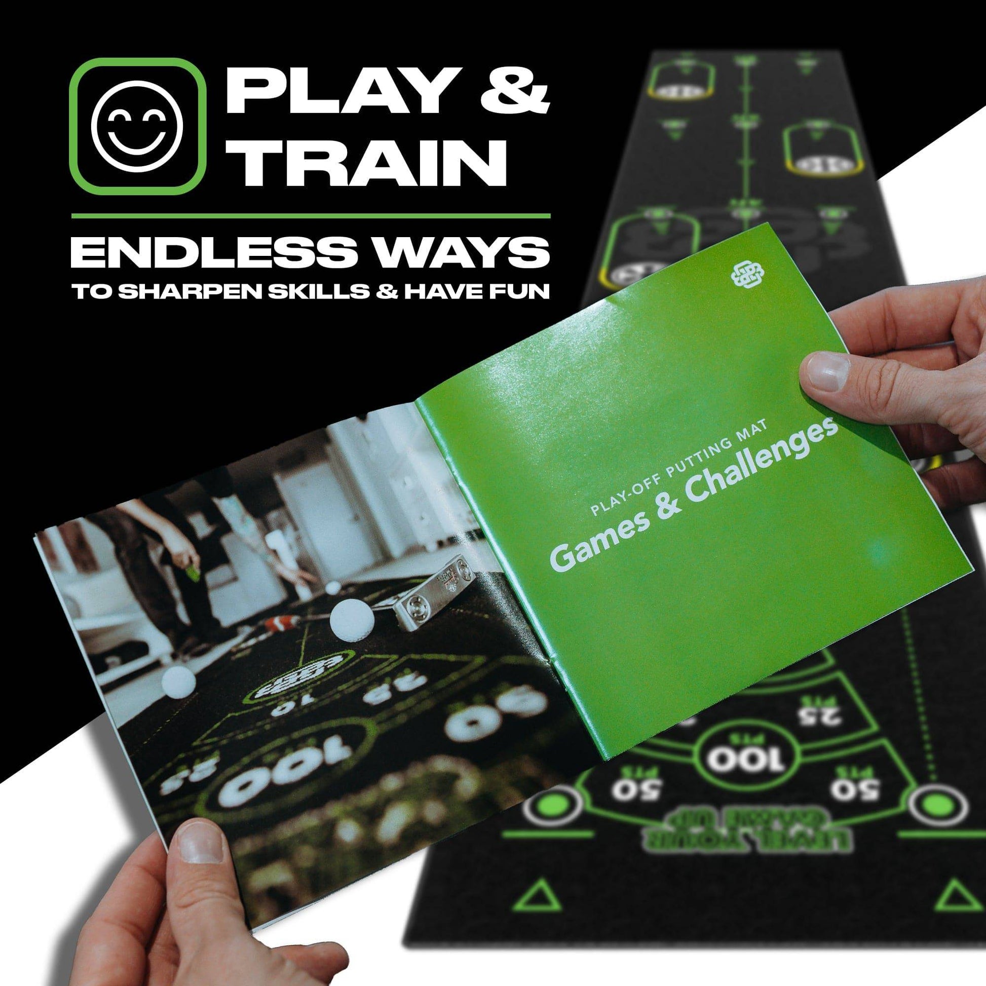 Maximize your progress by pairing the Play-Off Putting Mat with our patented Pro Path Putting Mirror. Use the center line for perfect setup, alignment, and stroke path a proven combination to lower your scores faster.